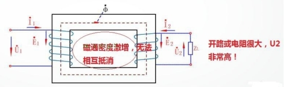 當電流互感器次級繞組開路時,這時分一次電流假設沒有改動,二次回路斷開,或許電阻很大,那么二次側的電流為O,或許十分小,二次線圈或鐵芯的磁通量就很小,不能抵消掉一次磁通量。這時分一次電流悉數變為勵磁電流,使鐵心飽滿,這個改動是遽然的,叫驟變,它的磁通密度高達幾個特斯拉以上。
