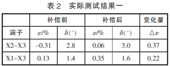 在表2和表3的實測效果中,補償前后相位差改動不大,標明本文中筆者舉薦的輔佐電壓互感器規劃結構漏抗小,對相位差的影響可以忽略不計,與剖析效果一起。