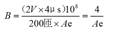 現(xiàn)在我們來看磁芯,假定二管是一般的一般的二管,通態(tài)電壓大約為1V,電流為10A/200=50mA。互感器輸出電壓為1V,加上二管的通態(tài)電壓1V,總電壓大約2V。250kHz頻率作業(yè)時,磁芯上的磁感應(yīng)強(qiáng)度不會跨過
