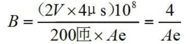 現(xiàn)在咱們來看磁芯,假定二極管是一般的一般的二極管,通態(tài)電壓大約為1V,電流為10A/200=50mA。互感器輸出電壓為1V,加上二極管的通態(tài)電壓1V,總電壓大約2V。250kHz頻率作業(yè)時,磁芯上的磁感應(yīng)強度不會跨越