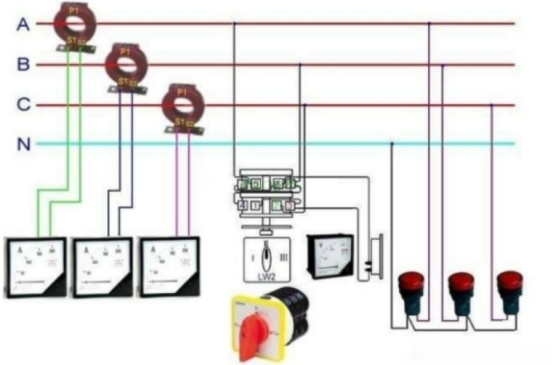 電流互感器是一種特別的變壓器,它的作用是把大電流變成標(biāo)準(zhǔn)小電流,配合檢測(cè)外表、計(jì)量外表和繼電器等設(shè)備作業(yè)。這樣可以起到擴(kuò)展外表檢測(cè)規(guī)劃,行進(jìn)電路的穩(wěn)定性和安全性的作用。電流互感器的電流接線原理圖如下圖所示,電流互感器的一次線圈串聯(lián)在一次主電路中,其二次接入的外表和繼電器的線圈也全部是串聯(lián)的。
