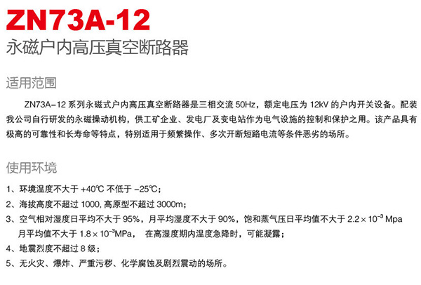 ZN73A-12永磁戶內高壓真空斷路器